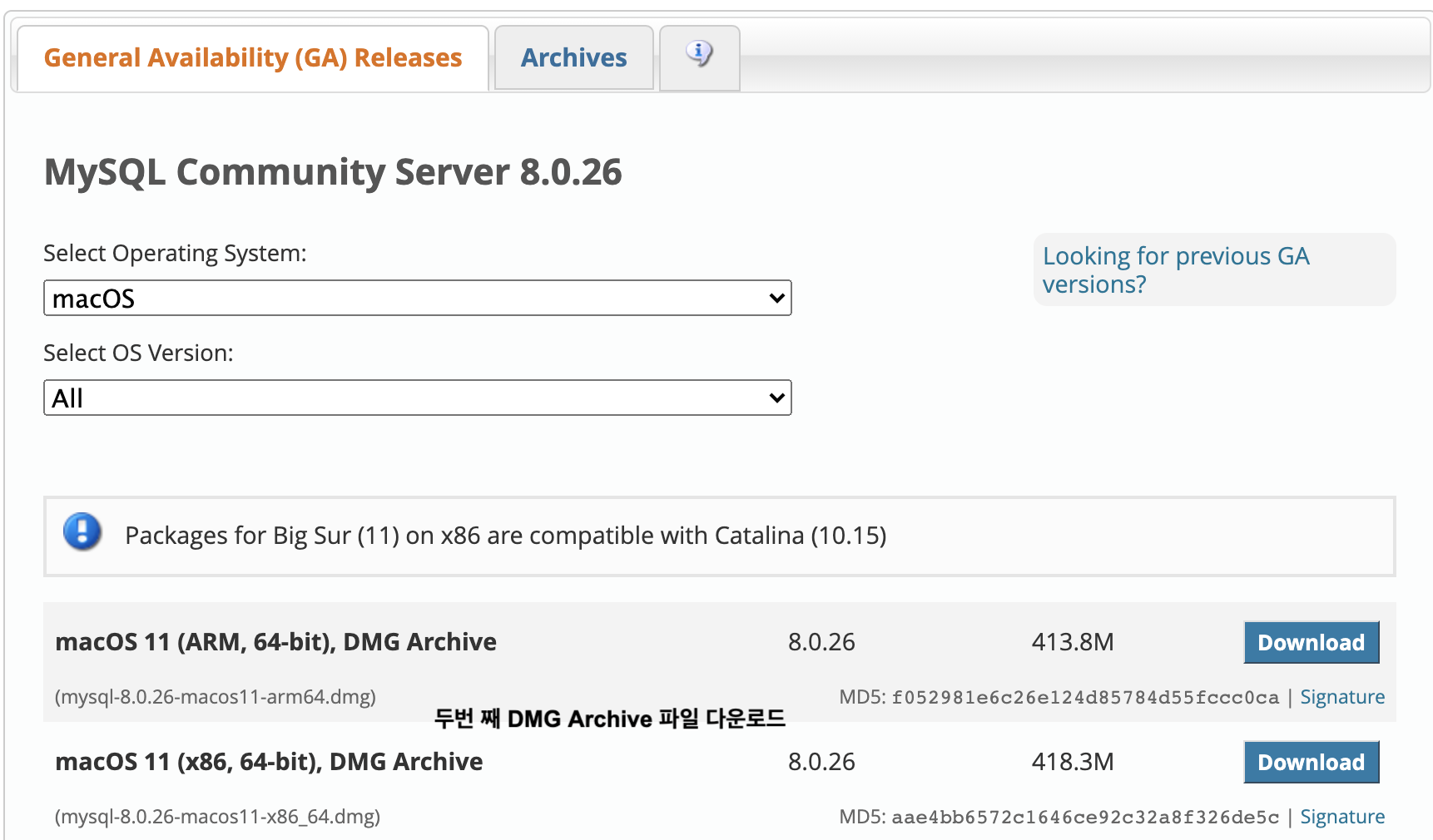 macOS 11(x86, 64-bit), DMG Archive 파일 (-> 두번 째 파일)로 다운로드 한다.